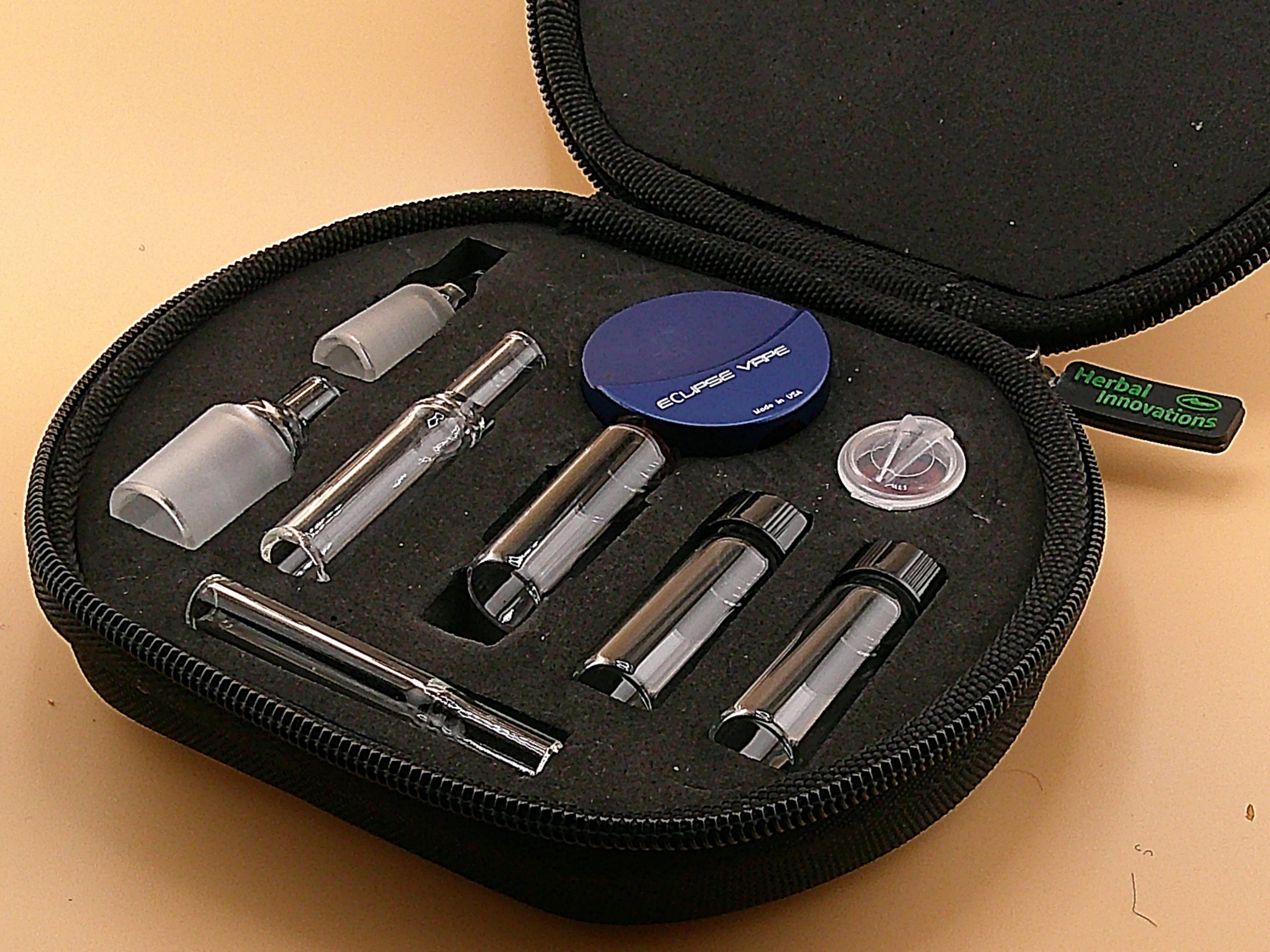 Blue Eclipse H2O includes 3 Vials, 14mm&18mm GG and slide adapters, extra o-rings all inside a Zipper case.